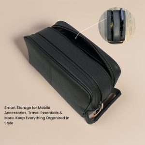 Classic Milano® Leather Travel Toiletry Bag, Hand Bag, and Clutch Bag for Men and Women – Travel Organizer, Spacious Cosmetic Case & Dopp Kit for Shaving, Makeup & Grooming Essentials